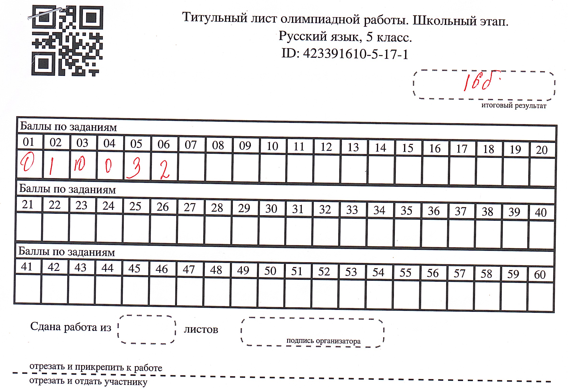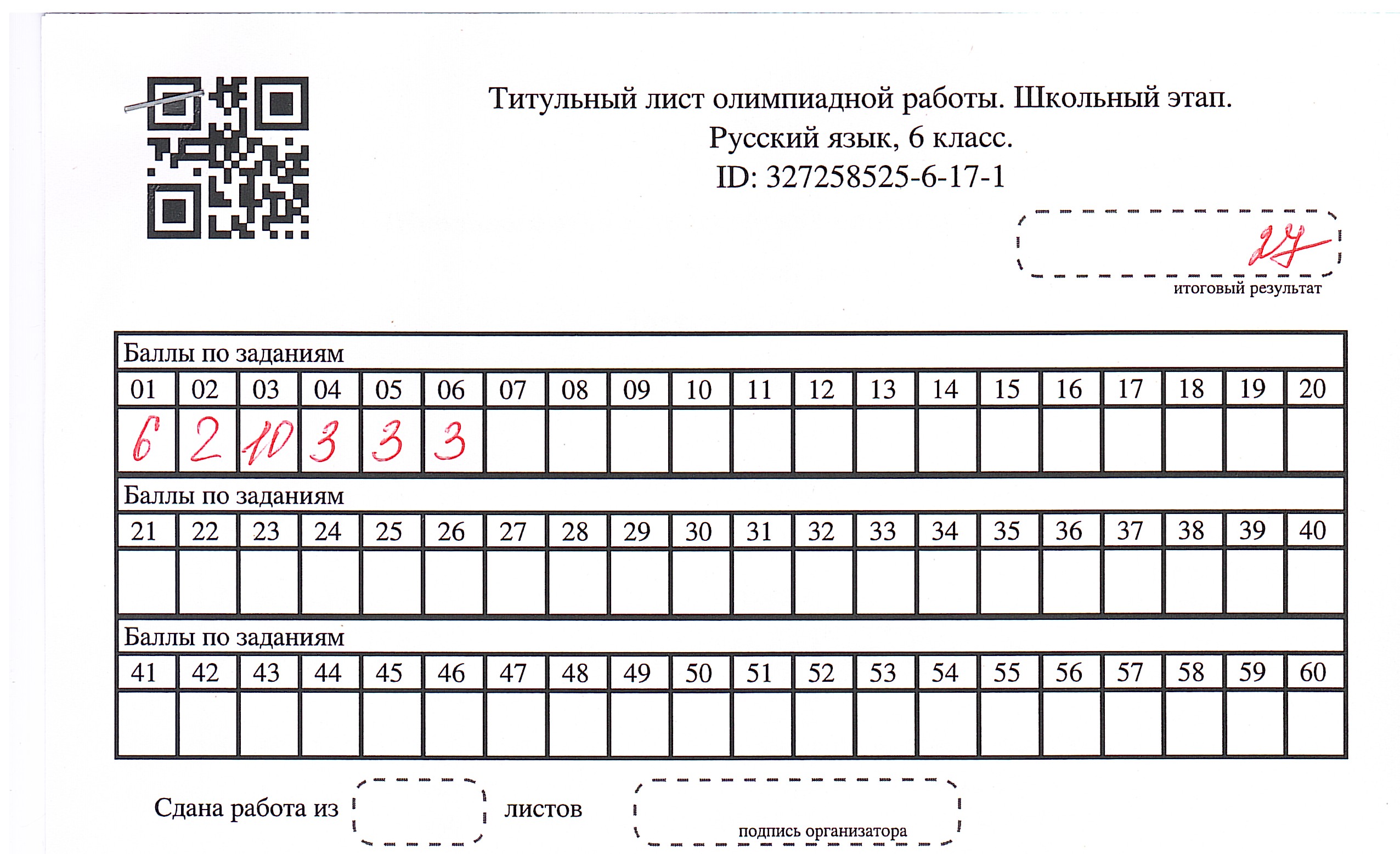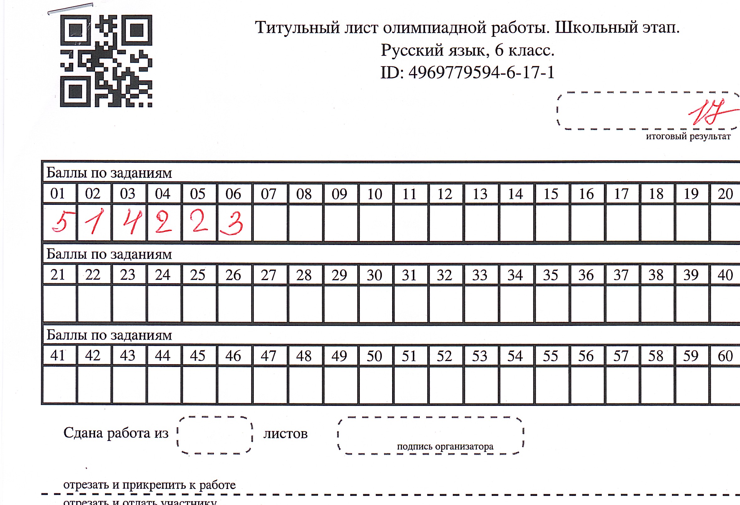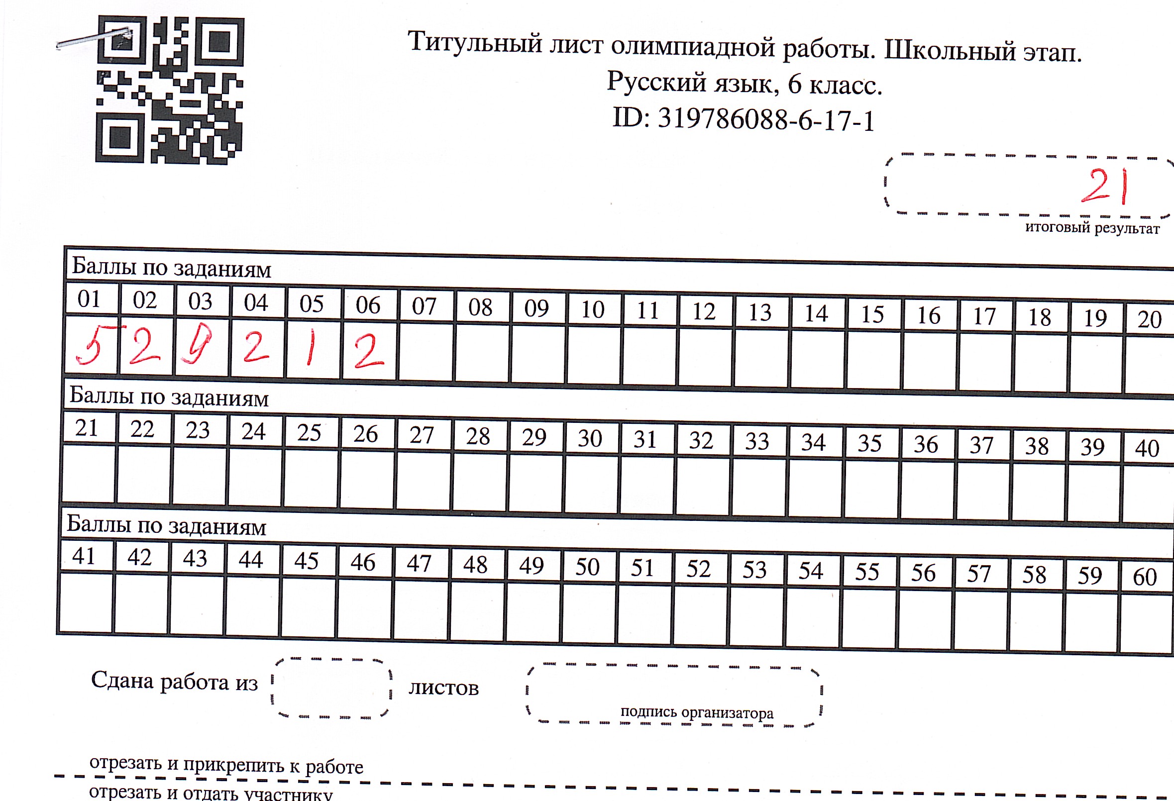Результаты олимпиады по русскому языку