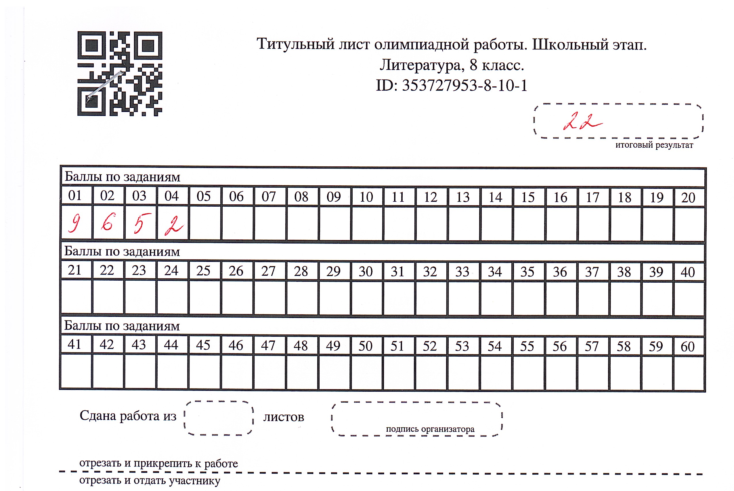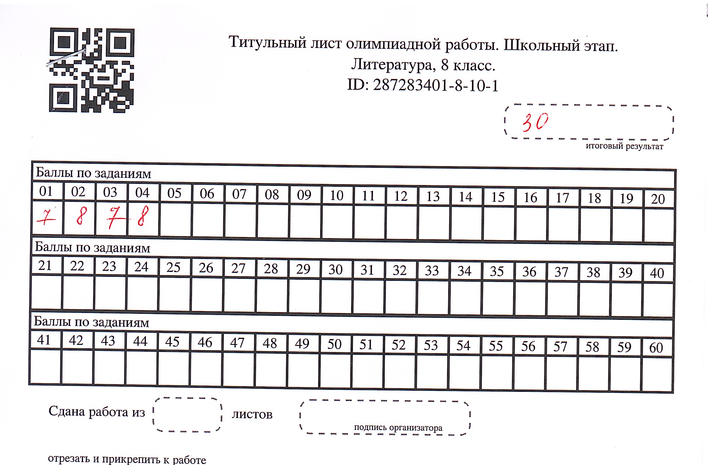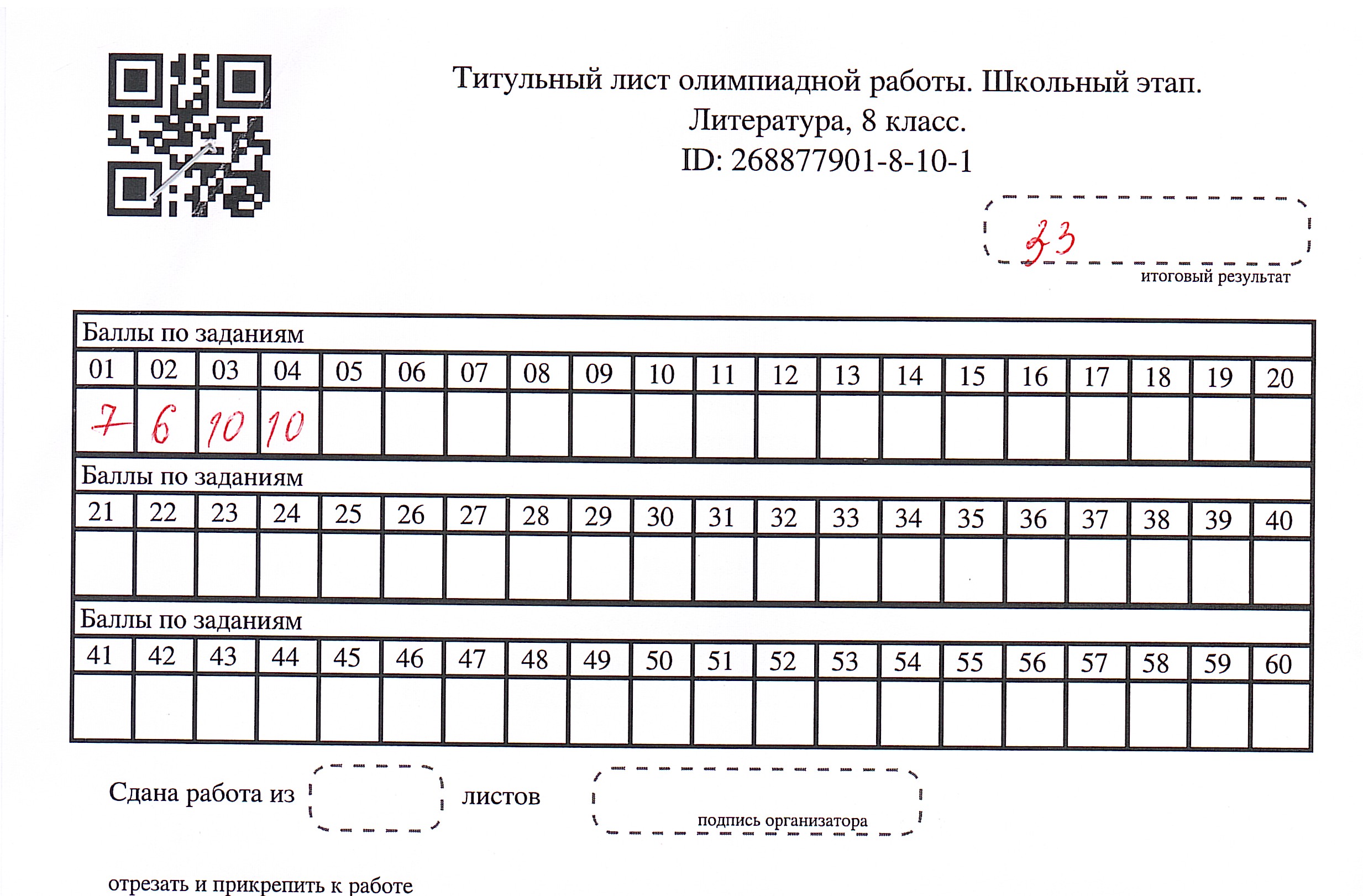 • Результаты олимпиады по Литературе